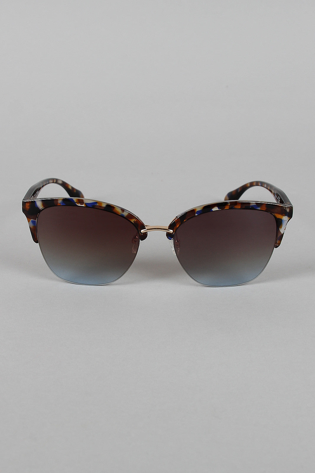 Clubmaster style sunglasses with partial plastic frame, metallic bridge, and slightly gradient lenses.