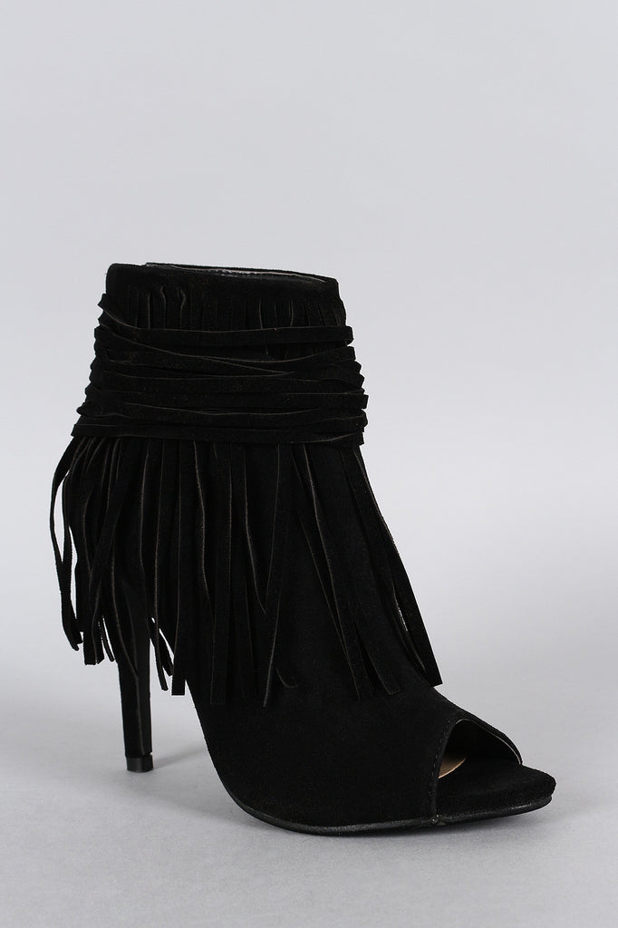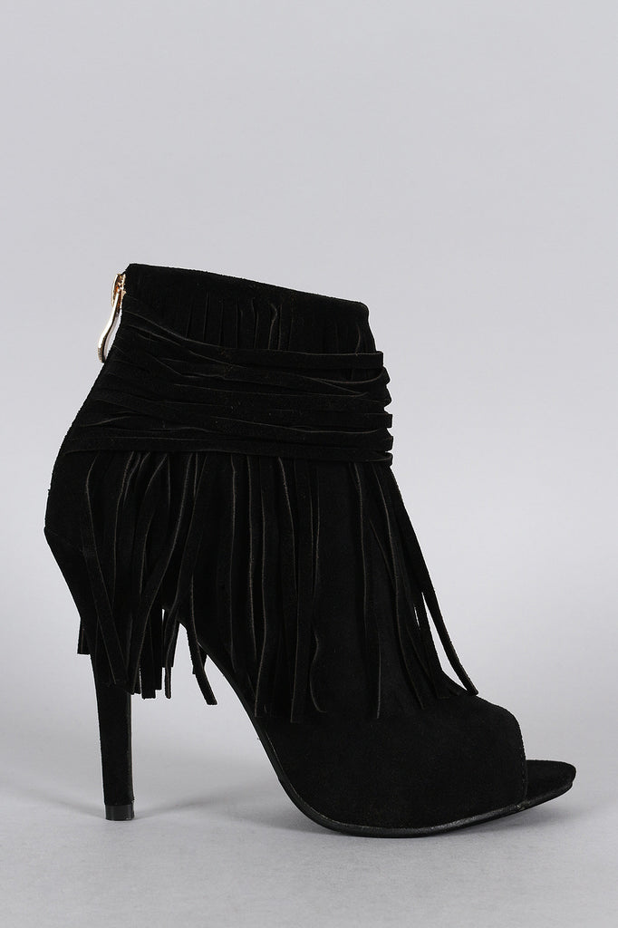 This ankle fringe design, and covered stiletto heel. Finished with cushioned insole, smooth interior lining, and rear zipper closure for easy on/off.