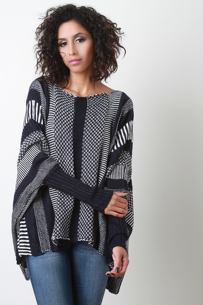 Striped Patterned Knit Dolman Sweater Top